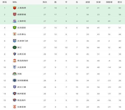 目前保级区的核心悬念集中在长春亚泰和青岛海牛。这两支此前同积18分的球队,本轮战果将直接决定武汉三镇的保级节奏。若明天二者双双输球,武汉三镇将以25分对18分的7分优势,提前两轮宣告保级成功——剩余两轮即便全败,保级区球队也无法追平分差。但只要其中任何一队取分,武汉三镇的领先优势就会被压缩,保级悬念将延续至第29轮,即下轮武汉三镇客场挑战青岛海牛的比赛,这场直接对话或将成为保级生死战。青岛海牛防守端问题突出,本赛季已丢57球,但其在与长春亚泰的交锋中占据相互战绩优势,保级战意同样强烈。对武汉三镇而言,若本轮未能“被保级”,就必须在客场拿下这场“六分大战”,才能彻底摆脱降级风险。