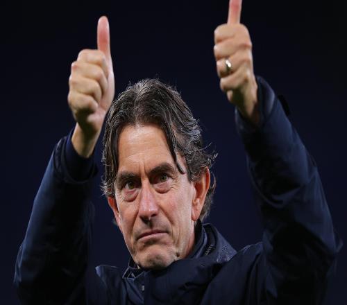 终于笑嘻嘻啦!赛后阿莫林握拳与球迷互动,赢球很开心!! -